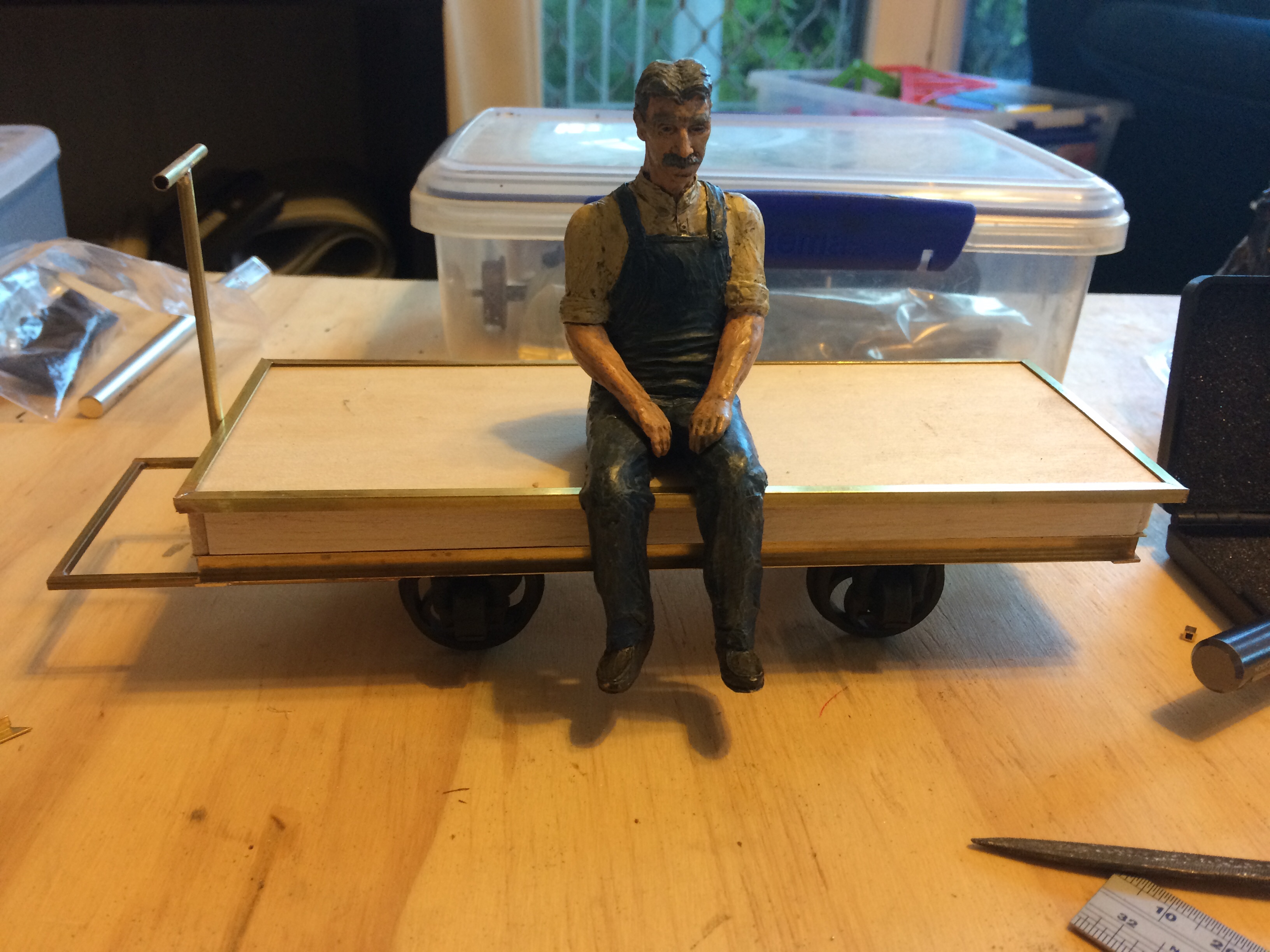 The only problem with 7/8th scale is the equipment is often too large to operate on friends G scale layouts. I had a look around for a small prototype that would fit within the the G scale loading gauge. I found a suitable prototype in the HAWE a small self propelled flat wagon used in the Netherlands. I found a Geocities page with heaps of photos of the prototype and some technical information. The key dimensions for building my interpretation of the HAWE are 3300mm long, 1000mm wide.